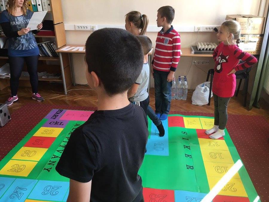 | Élő társasjáték- „Vigyázz hova lépsz!”vagy „Lépkedj okosan!” |